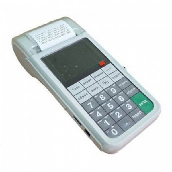 Эта ККМ является небольшим устройством с габаритами 220x105x60 мм и весом 0,83 кг, в которое можно запрограммировать до 2000 товаров на продажу. В нём нет собственного встроенного аккумулятора, зато можно установить свои батарейки или аккумуляторы АА. Дисплей очень удобный, символов и букв помещается много, строки имеют разный цвет. Встроенный термопринтер использует стандартную бумагу 57 миллиметров, что очень удобно, причём один рулон уже включён в комплект. Программирование продаваемых товаров возможно прямо на самой ККМ.