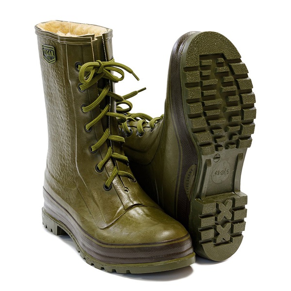 Сапоги из каучука превосходят в прочности сапоги из ПВХ и намного более износостойкие, чем лёгкие сапоги ЭВА. Есть металлическая пластина в подошве для увеличения жесткости на изгиб и кручение.